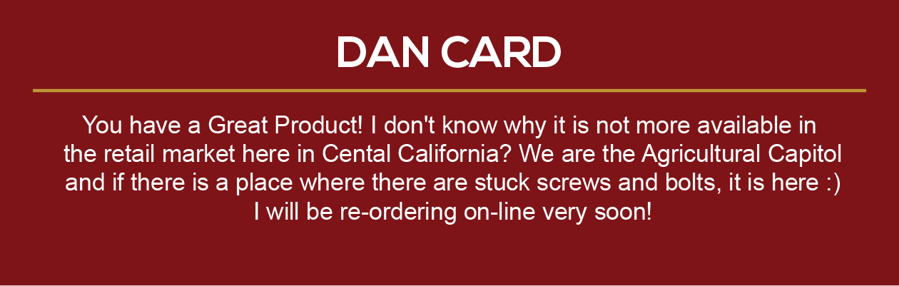 ScrewGrab is a friction gel that helps remove or tighten all types of fasteners, such as damaged or rusted screws, nuts and bolts. A single dab of ScrewGrab creates a positive grip between metal surfaces (new tests have shown as high as 800%),